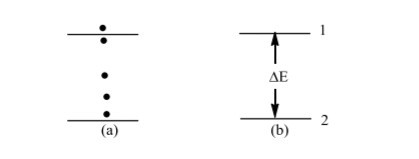 Figure 1.2b illustrates this. If we give energy to an object in state 2 the object will only move to state 1 if it has acquired enough energy equal to ΔE = E1-E2(where, ΔE is change in energy, E2 is the energy of state 2 and E1 that of state 1).