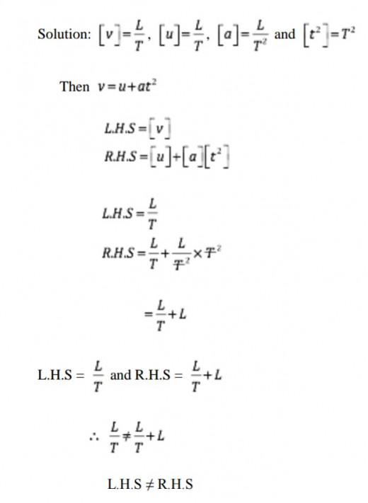 In order to check if a physical relation or a scientific equation is correct or not, dimensional analysis is applied. When the dimensions of the two sides of the equation thus, the right hand side (RHS) and the left hand side (LHS) are equal a scientific equation is considered as dimensionally correct and visa versa.