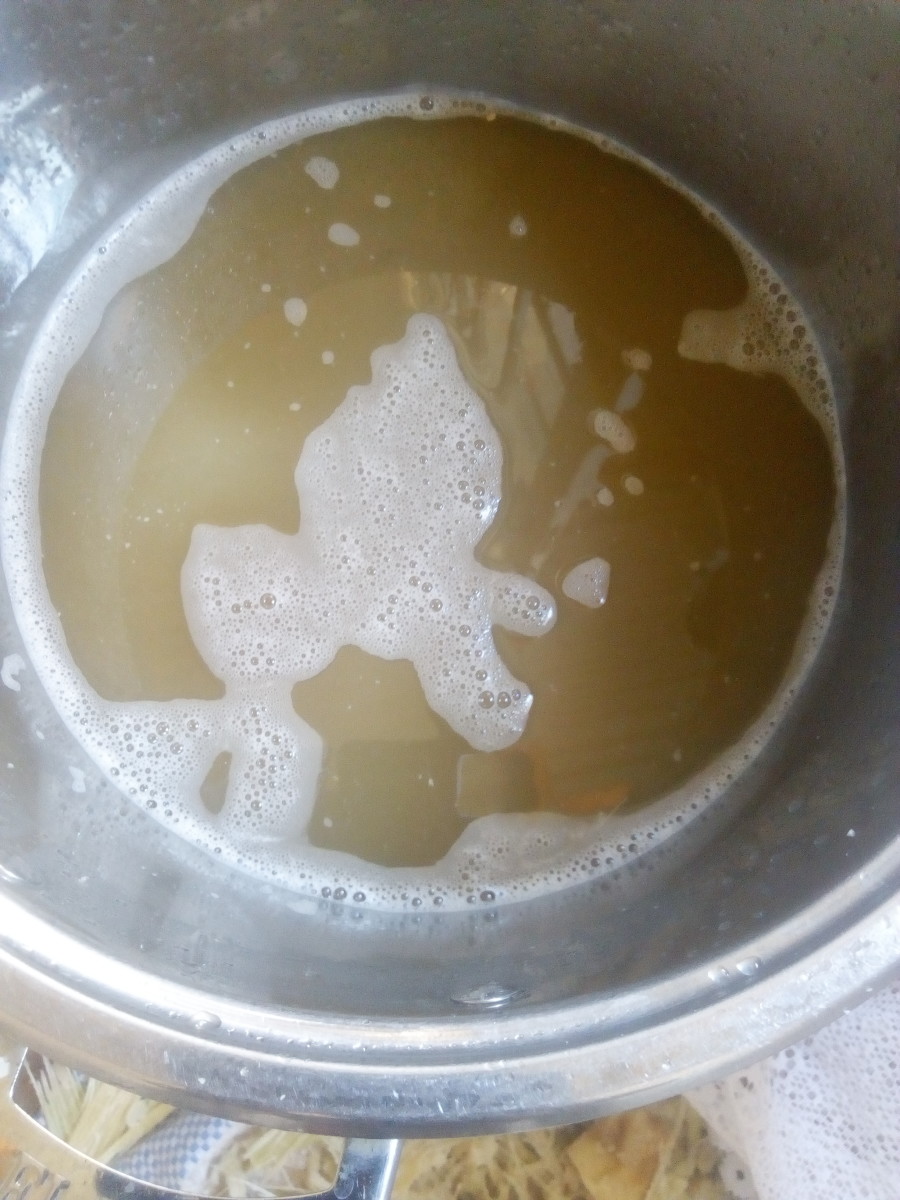 After successfully pounding the sugarcane which makes it very small pieces, the next step is to squeeze the sugarcane to extract juice. This process can involve you putting the pounded sugarcane on a clean cloth, and apply much force which will result the juice being extracted from the pounded sugarcane. This process can also be completed by putting the pounded sugarcane in a pot, adding a hot water and put them on fire for a few minutes, then allow them to cool and squeeze to remove the remaining juice which does not come out of the sugarcane during the heating.